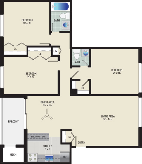 2 Bedrooms + 2 Baths 2 Beds 2 Baths 890 - 1120 sqft $1,423 - $1,613 per month Inquire for Availability View Details